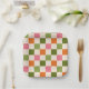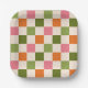 Cute Retro Orange Pink Green Chequerboard Pattern Paper Plate