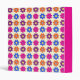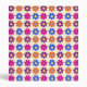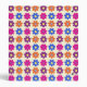 Retro style pattern of blue, pink, purple and orange penny flowers.