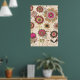 Cute retro pink, brown floral pattern custom poster
