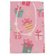 Cute Retro Pink Presents Christmas Medium Gift Bag