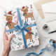 Cute little Christmas reindeer are scattered across this wrapping paper roll. They sport red Santa hats, collars and wreaths of Yuletide greenery and holly, and fanciful antlers. This lovely and fun pattern is of retro vintage origin.