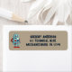The return address labels feature a cute illustration of a retro style robot in light blue and your name and address in navy blue lettering set against a tan coloured background.