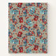 Add your own custom text to the front of this notebook that features cute illustrations of retro style robots in blue and red. The graphics are set against a tan coloured background. The back cover has a coordinating pattern of retro robots and hex nuts.