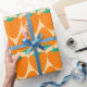Cute Retro Strawberry Pattern in Orange and Green Wrapping Paper