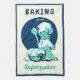 Cute little chef in vintage 1950s / 1960s style in blue tones for retro mid century aesthetic with text "Baking is mu superpower", perfect gift for the lover of baking, cooking