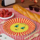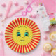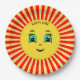 Cute Rising Sun Happy Face & Red Rays Paper Plate