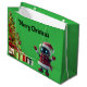 Wrap your gifts in festive fun with this bright and playful gift bag featuring a cute Santa-hat-wearing robot and a merry holiday quote. The charming design adds a modern and whimsical twist to Christmas gifting, making every present look extra special under the tree.