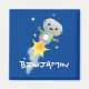 This cute robot is flying in space with rocket power! Drawn in adorable cartoon illustration style.