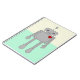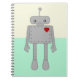Notebook featuring a cute robot with a heart on a mint green and pale yellow background.