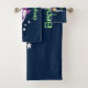 It was advertised as NAVY blue and the color sent was greenish blue. I am disappointed in this product. Quality and printing are great as are all my other orders. As you can see in picture the tea towel on right is perfect, hand towel not so much! Print was awesome and just as ordered