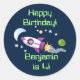Explore space on your child's special day with this cute design featuring a boy in a rocket ship drawn in fun cartoon illustration style!