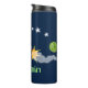 Cute rocket ship in space cartoon illustration thermal tumbler