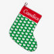 Cute romantic heart pattern custom name Christmas Stocking. Available in small and large size. Personalized design in red and green colors. Cool x-mas decor sock for the Holidays. Elegant script typography template. Fun decorations for kids and adults. Love icon print. Nice for boyfriend, girlfriend, husband, wife, couple etc.