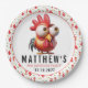 Cute Rooster Caricatures 3rd Birthday Party Paper Plate