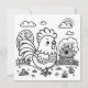Cute rooster on a farm colouring card. Cute adult colouring poster for kids, teens or adults, Simple thick lines to make colouring easier.