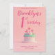 Jolie invitation de fête d'anniversaire rose avec des graphismes de gâteau et de fleurs et texte rose changeable.