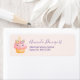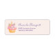 Étiquettes de adresse avec un dessin d'aquarelle d'un cupcake avec glaçage rose, une corne de licorne et des roses colorés.