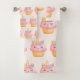 Serviette sertie d'aquarelle d'un cupcake au glaçage rose, corne de licorne et roses colorés.