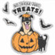 No Tricks, Just Treats! Cute Rottweiler Halloween Sticker. This spooky vinyl sticker is water resistant, great for laptops, water bottles, car windows and more. An original design for Rottie lovers.