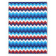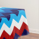 Une nappe de 52" x 70" avec un design motif coloré et mignon, de chevrons rouges, blancs et bleus.
