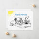 Send this flat card to all your contacts when you have a new address which features a charming vintage black line drawing of a woman with all her belongings in a small boat with a child as captain, the sun shining behind them. "We're Moving" is in a blue decorative typeface on the front. On the reverse side is your message and new address. Personalize all text in the template fields provided. Matching return address labels and stickers are available in my store, Groden Designs.