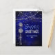 Cute royal blue monogram ornaments Christmas greeting postcard. Celebrate the season with this chic stylish glittery design, It is simple, easy, yet modern and festive. It is fully customisable and personalized with your own greeting messages. This design can also be transferred onto any product on zazzle. Please add your return address for easy mailing. Perfect for sending your holiday wishes to family and friends.