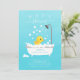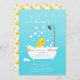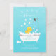 Adorable duck in a bath tub with shower head set on a blue background for a neutral baby shower. Flip our sweet invitation over to view a coordinating duck back for an extra special touch. Visit our shop to view matching shower items. This invitation is also available for twins & triplets!