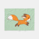 Cute Running Fox on Green Fleece Blanket
