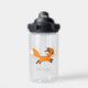 Cute little cartoon fox kit with large ears and bushy tail is running fast.