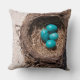 Cute Rustic Bird's Nest Blue Robin Eggs Throw Pillow