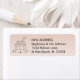 Un mignon cottage rustique avec boucles de fumée de la cheminée est placé sur un arrière - plan rose en or et en dégradé blanc sur notre nouveau étiquette de notification d'adresse. Customisez facilement le étiquette avec vos renseignements personnels. Il est également possible de coordonner le changement d'adresse de la carte postale "Nous sommes en train de réduire".