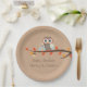 Craft paper look baby shower paper plate, with cute graphics of a colourful momma and baby owl sitting on a Fall tree branch. Personalize the brown text to read what you want. Matching invitations and other party supplies are available.