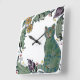 Cute Rustic Teal Cat Kitten Floral Folk Style Tile Square Wall Clock