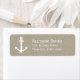 Etiquettes rustiques et mignonnes d'adresse de retour avec un joli design d'ancre blanche nautique sur un arrière - plan de lin beige faux tan. Étiquettes de adresse élégants et design.
