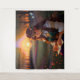 Cute Sad Anime Style Woman in Meadow at Sunset Tapestry