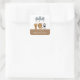 These cute custom baby shower stickers have a boho baby animal theme. Three cute safari animal babies - a giraffe, a lion cub, and a zebra - are standing together beneath a rain cloud. A sample name is printed at the bottom which you can personalize to include your own custom name or text. The earthy, boho colours are gender neutral so it's suitable for a baby boy or baby girl shower.