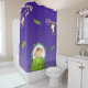 A shower curtain with cute little monkeys swinging from trees and one is peeking out from behind a bush. Cute and whimsical safari design. Set on a purple gradient background.