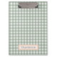 Cute Sage Green Plaid Personalized Clipboard