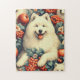 Cute Samoyed Floral Painting Jigsaw Puzzle