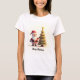 Celebrate the season in style 🎄✨ with this adorable modern Santa standing beside a small elegant Christmas tree glowing with soft golden lights. Minimal clean white background, subtle sparkles, warm festive atmosphere, and stylish “Merry Christmas” typography below. Ultra HD quality, perfect for holiday outfits, family photos, and Christmas parties 🎅💛.