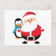 Cute Santa Claus And Penguin Holiday Postcard