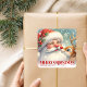 Cute Santa Claus Rudolph Personalized Holiday Kids Square Sticker