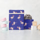 Cute Santa Flamingos Pattern Dark Blue Christmas Wrapping Paper