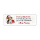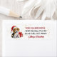 The left side of these fun Holiday return address labels features an image of an adorable Beagle puppy wearing a red and white Santa hat and sitting beside wrapped Christmas gifts. Your custom text is in red and black at the right. A subtle gold confetti background gives a bit of Christmas sparkle.