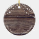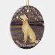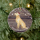 This ceramic Christmas ornament has a cute Golden Retriever wearing a red Santa hat , wood and lights background and a message from the Retriever on the back. This ornament is perfect for your tree or to give as a gift.