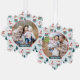 Cute cartoon white mice wearing Santa hats pattern Christmas photo ornament paper card. Photo templates on the front and the back you can change to your own family's photos.