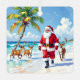 Cute Santa on Beach with Reindeer Personalized Metal Ornament