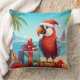 Cute Santa Parrot Tropical Beach Christmas Throw Pillow