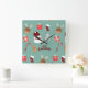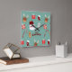 Cute Santa Reindeer Candy Cane Gingerbread Pattern Square Wall Clock