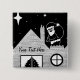 This original happy father christmas illustration on this customizable christmas button was drawn in pen and ink. The black and white christmas illustration shows a cute santa carrying his sack on the snow covered roof. Santa really stands out against the starry sky as he delivers his christmas gifts. A decorated christmas tree is in the window and a large star is shining in the night sky. This  cute christmas button is customisable you can personalize it with you’re own message. This santa drawing is part of a collection of four black and white pen and ink christmas illustrations.